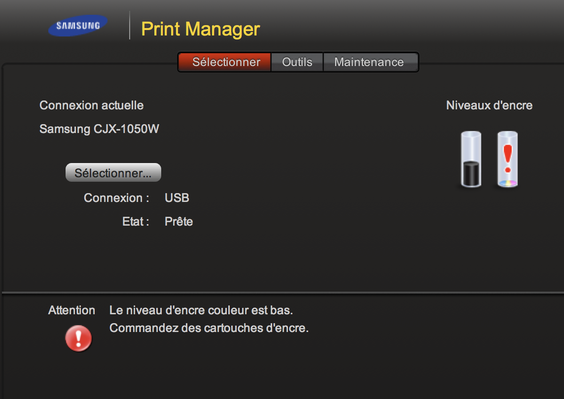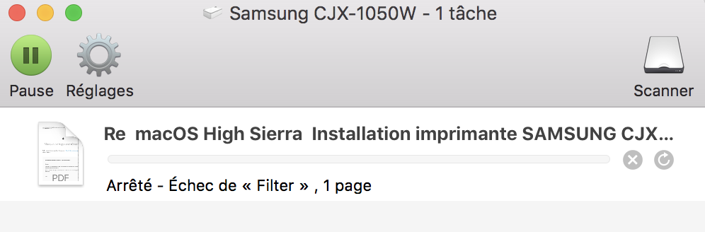 Installation imprimante SAMSUNG CJX_1050W sur MAC