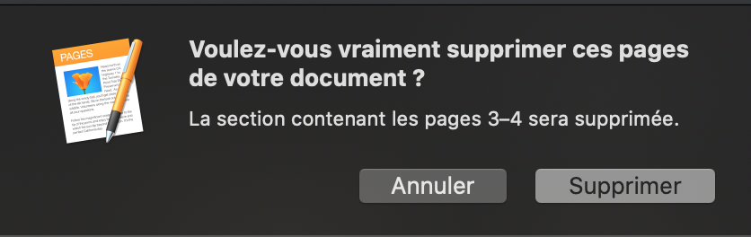 Source : Pages pour Mac: Ajouter, supprimer ou réorganiser les pages d’un document Pages.