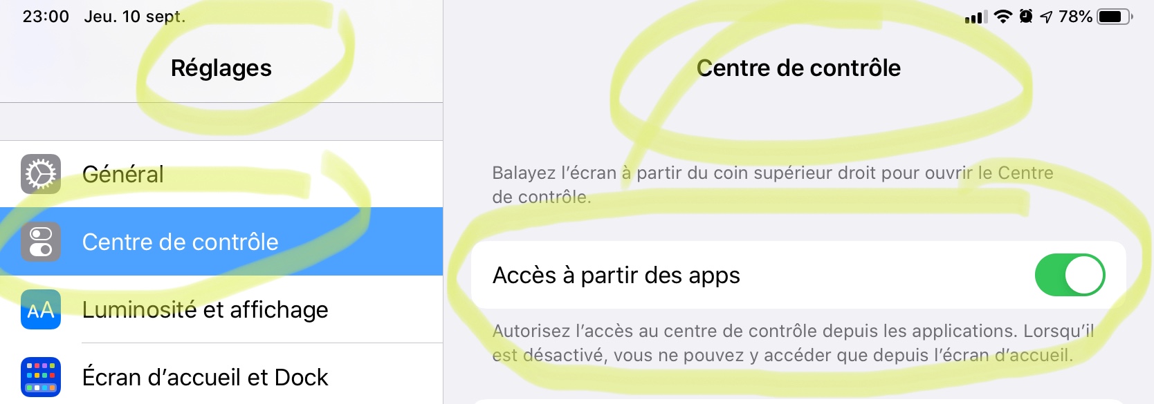 Suite à une mise à jour le centre de contrôle de mon iPhone 7 Plus ne s’affiche plus