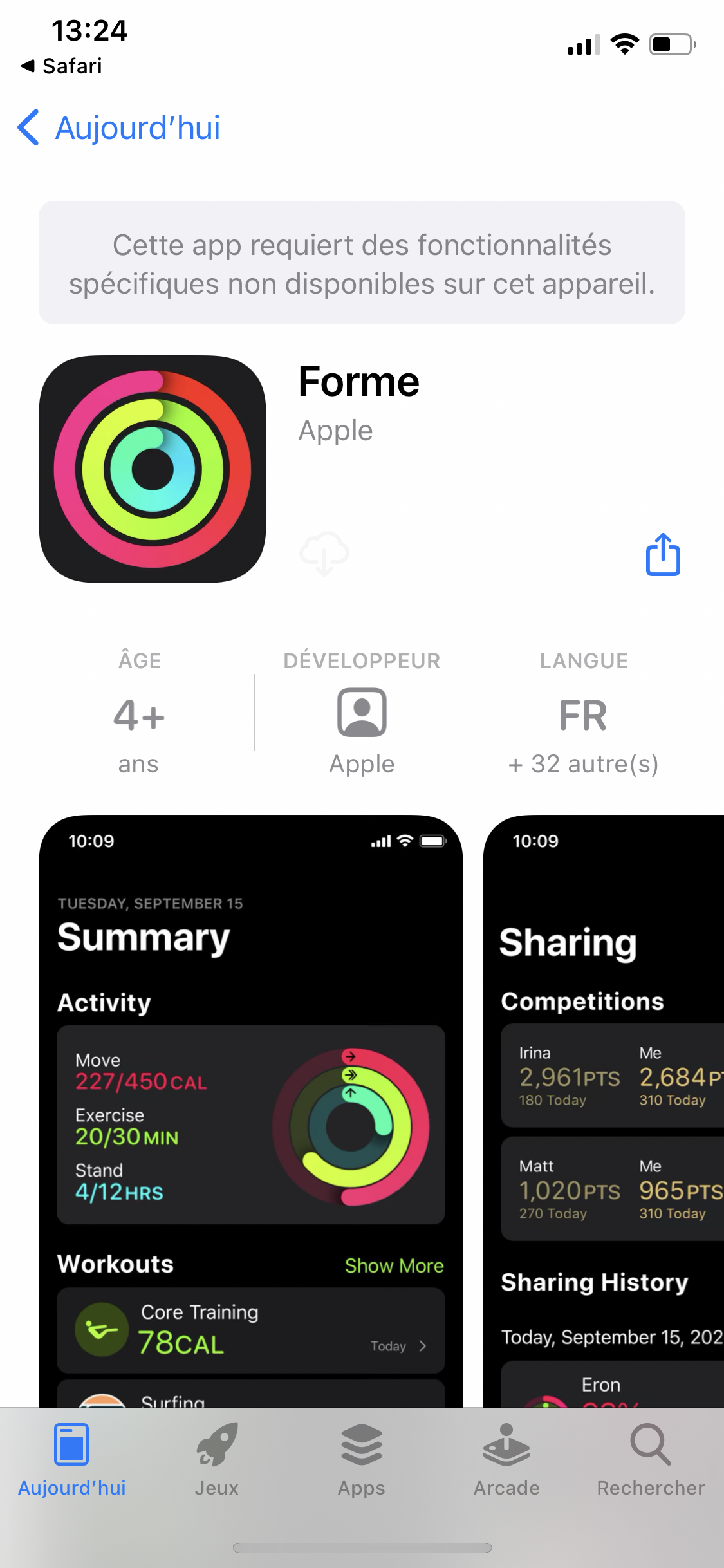 C'est vraiment étrange que tu ne puisses pas télécharger cette application, d'autant plus qu'elle est développée par Apple. Au vu du message d'erreur qui s'affiche, il y a peut-être un réglage qui provoque ce souci ou une fonctionnalité qui manque.