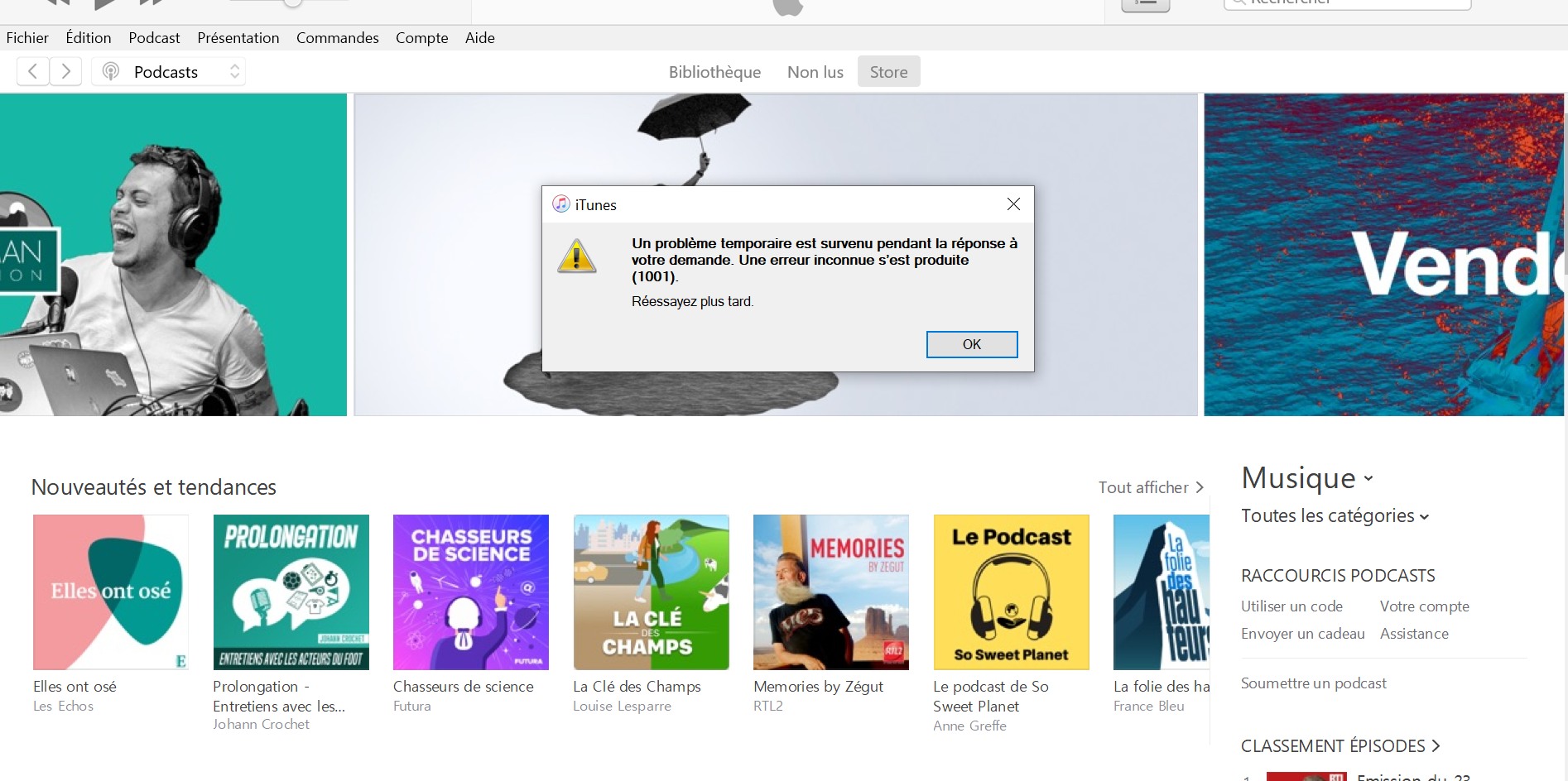 Si ce n'est pas le cas, dans iTunes cliquez sur Compte puis ce connecter. Apres avoir renseigné votre compte Apple cliquez à nouveau sur Compte puis Autorisation puis Autoriser cet ordinateur.