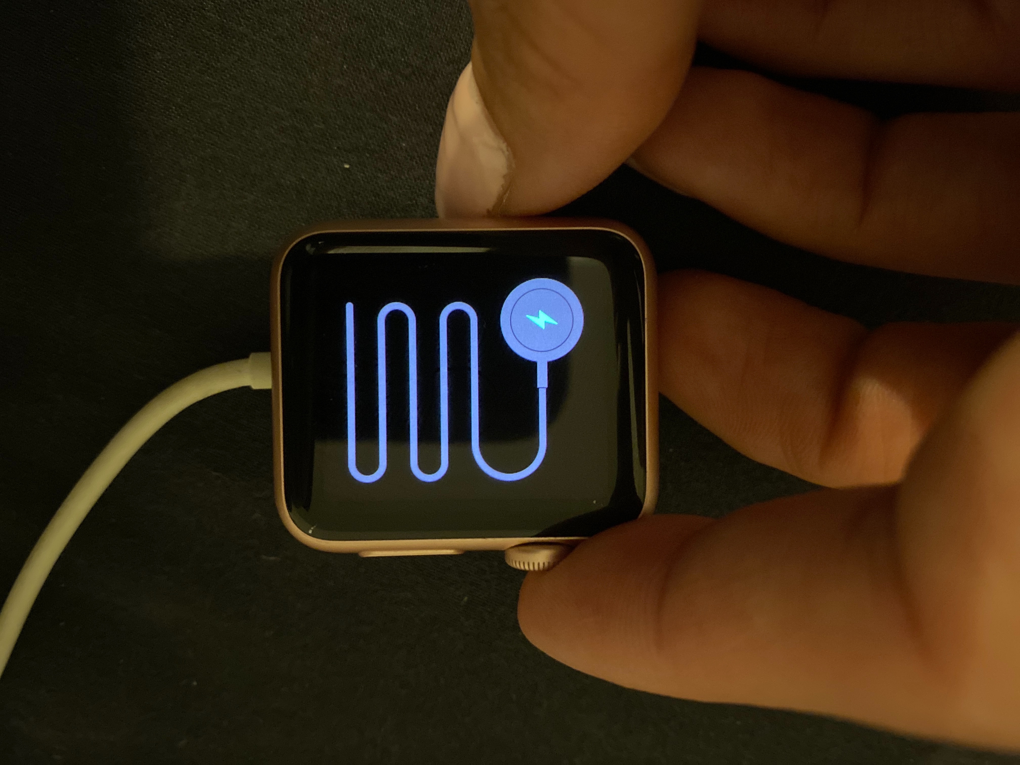Ma montre est sur le chargeur avec l’éclair vert apparent, lorsque j’essaie de l’allumer celle ci affiche écran noir puis l’éclair vert c’est tout impossible de la rallumer cela fait un petit moment que je l’ai pas utiliser elle n’est jamais tomber et toujours rangée dans un endroit sec