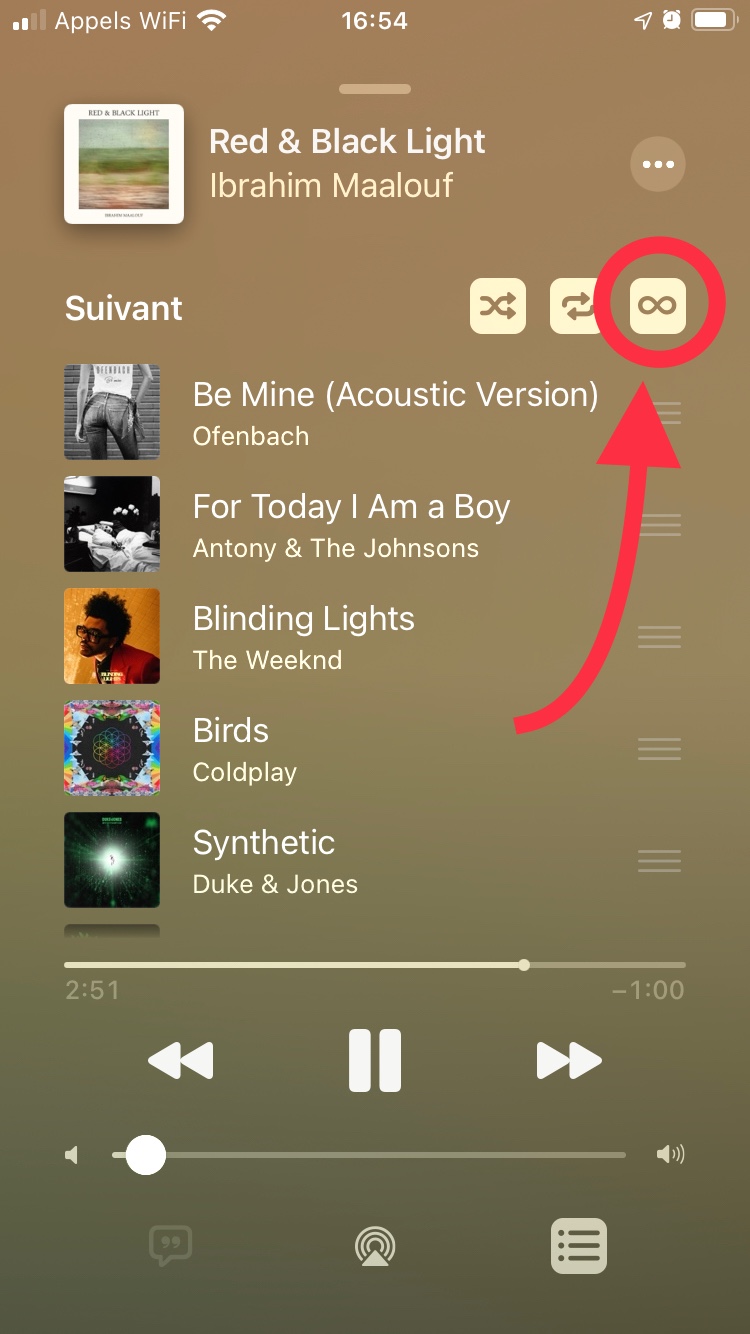 Bouton infini Apple Music