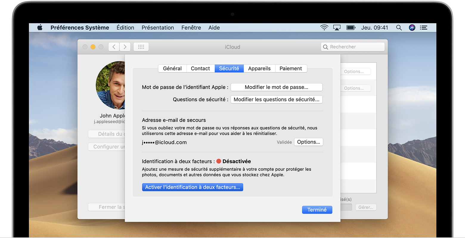 Certains identifiants Apple créés sous iOS 10.3 ou macOS 10.12.4 (ou version ultérieure) sont protégés par défaut par l’identification à deux facteurs. Dans ce cas, cette fonctionnalité est déjà activée.