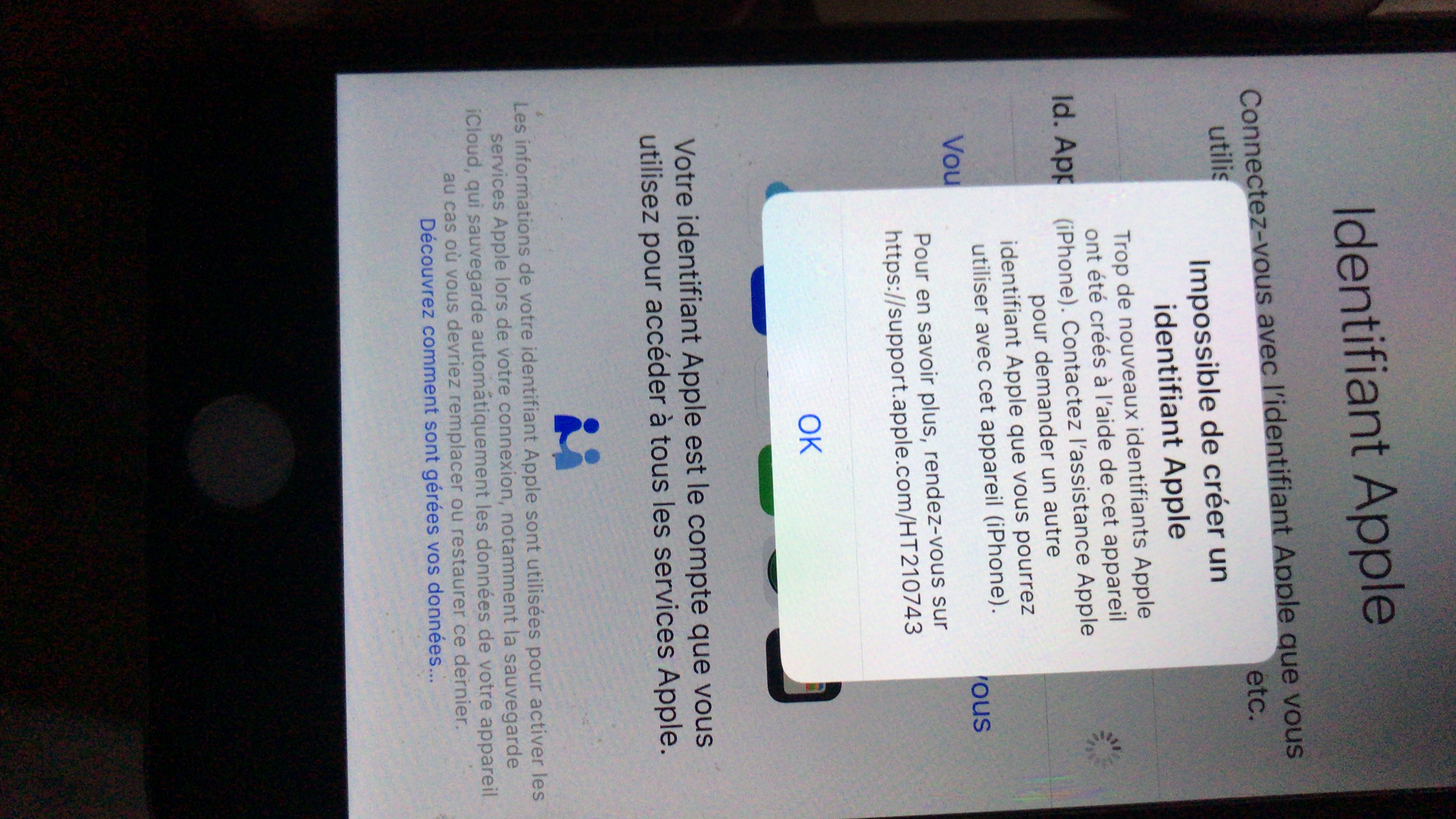 Trop de nouveaux identifiants Apple ont été créés à l'aide de cet appareil