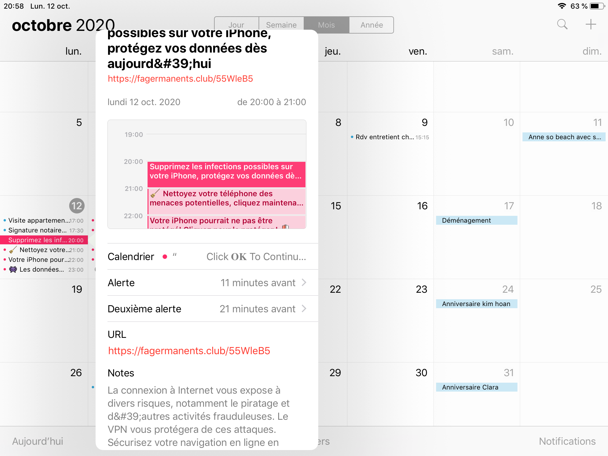 J’ai des problèmes sur mon calendrier, il y a des notifications qui apparaissent sur la photo en point rouge et quand je clique dessus il y a l’affichage ci-dessous. Avez-vous une solution à mon problème?