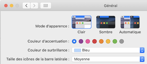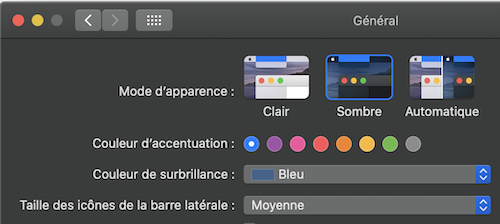 Préférences système > Général > Clair ou Sombre