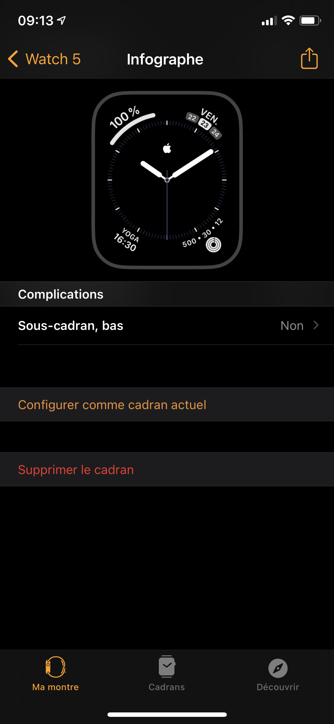 Un des avantages de l'Apple Watch c'est de pouvoir personnaliser le cadran donc c'est dommage que tu ne puisses pas le faire complètement.