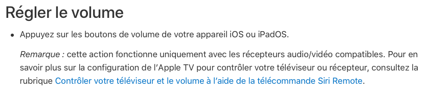 Je n’arrive pas à contrôler le volume de mon Apple TV depuis mon iPhone. Est-ce possible?