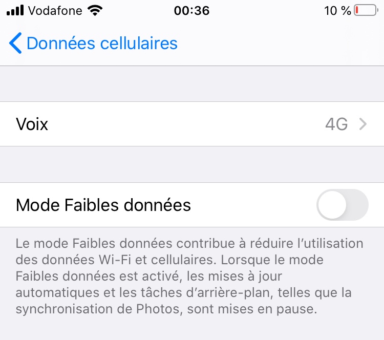 Voici l’image de ce que j’ai en cherchant dans options sous les données cellulaires ...