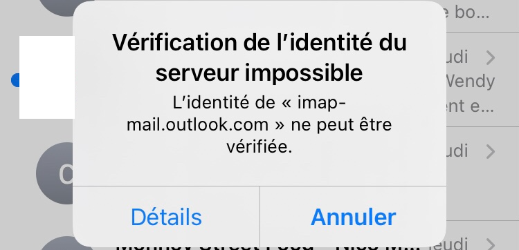 Erreur de serveur "imap-mail-outlook.com" sur iPhone 7