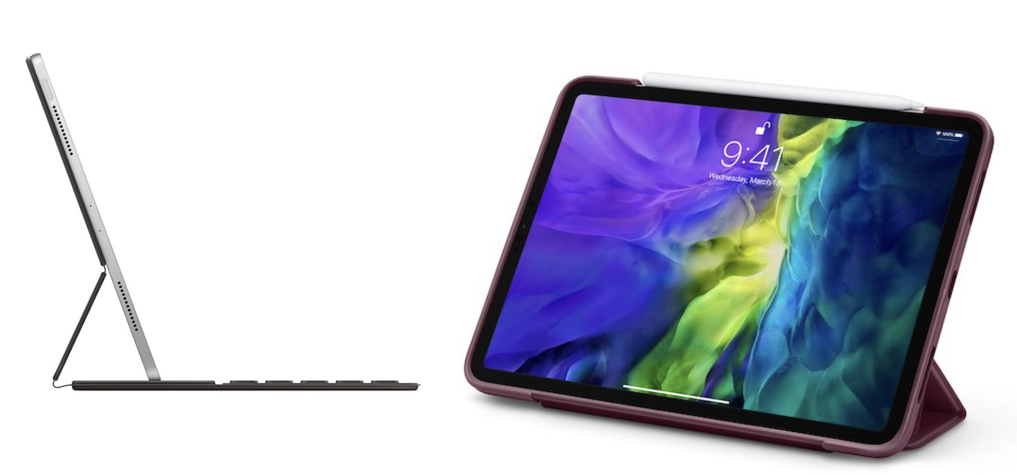Sources : Smart Keyboard Folio pour iPad Air (4ᵉ génération) et iPad Pro 11 pouces (2ᵉ génération) - Français - Apple (FR) et Coque Symmetry Series 360 d’OtterBox pour iPad Pro 11 pouces (2nd génération) - Apple (FR)