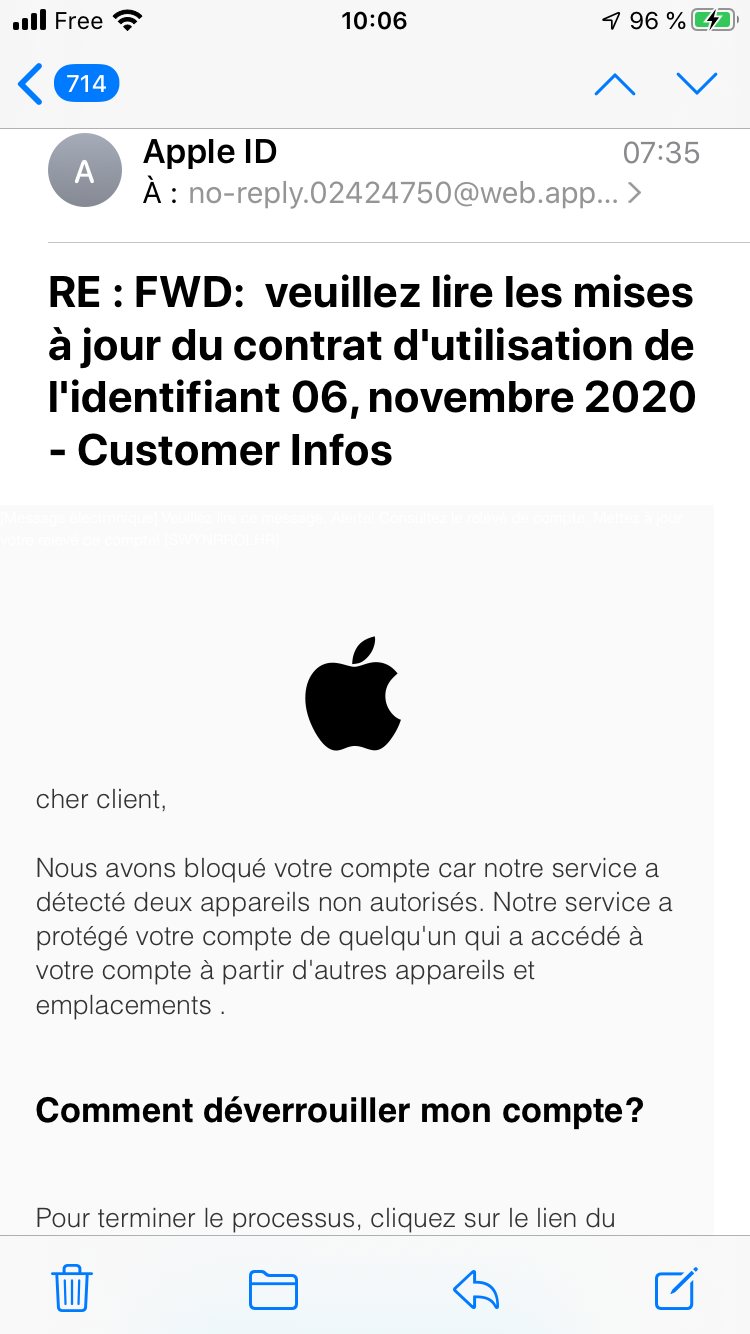 J'ai reçu un email suspect lié à mon identifiant Apple