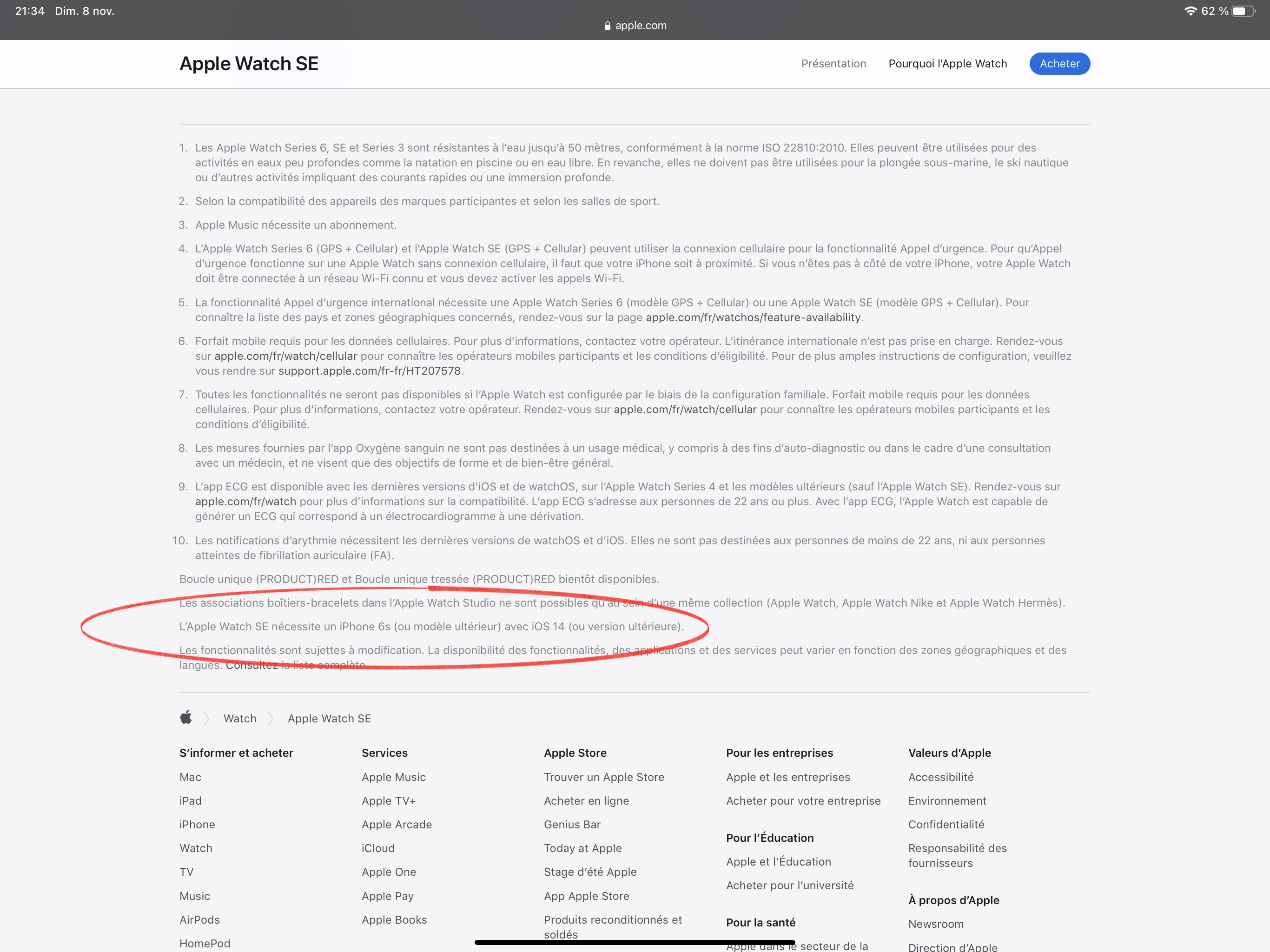 Je souhaite savoir si l'Apple Watch SE est compatible avec un Iphone 5SE ? Car je ne retrouve pas d'éléments à ce sujet