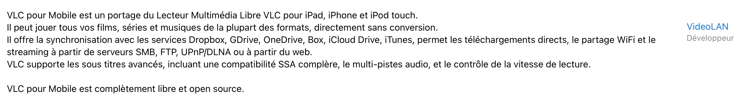 D’après la documentation VLC dans l’Apple store