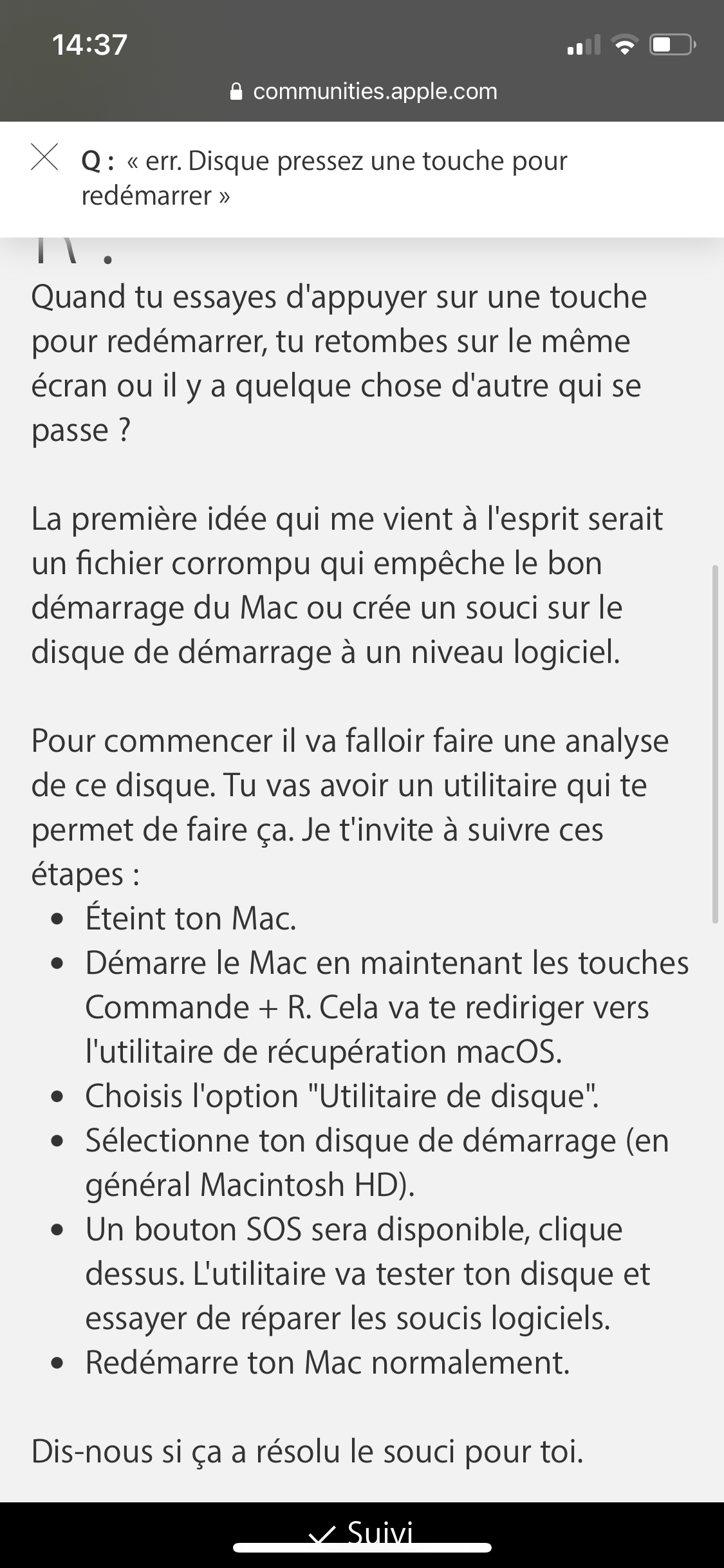 Tu ouvres l'utilitaire de disque, tu sélectionnes ton disque dur tu lance SOS, tu redémarre ton Mac et tu refais la mise à jour