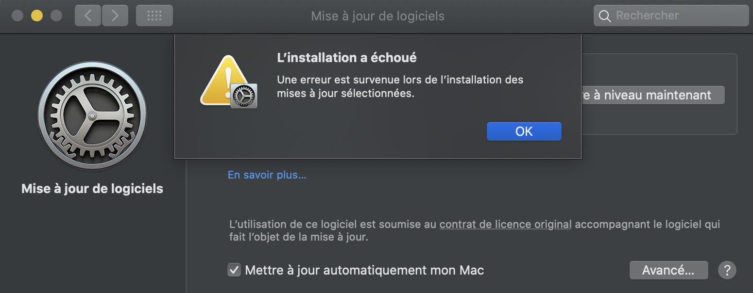 Installation de Big Sur sur MacBook Pro a échoué