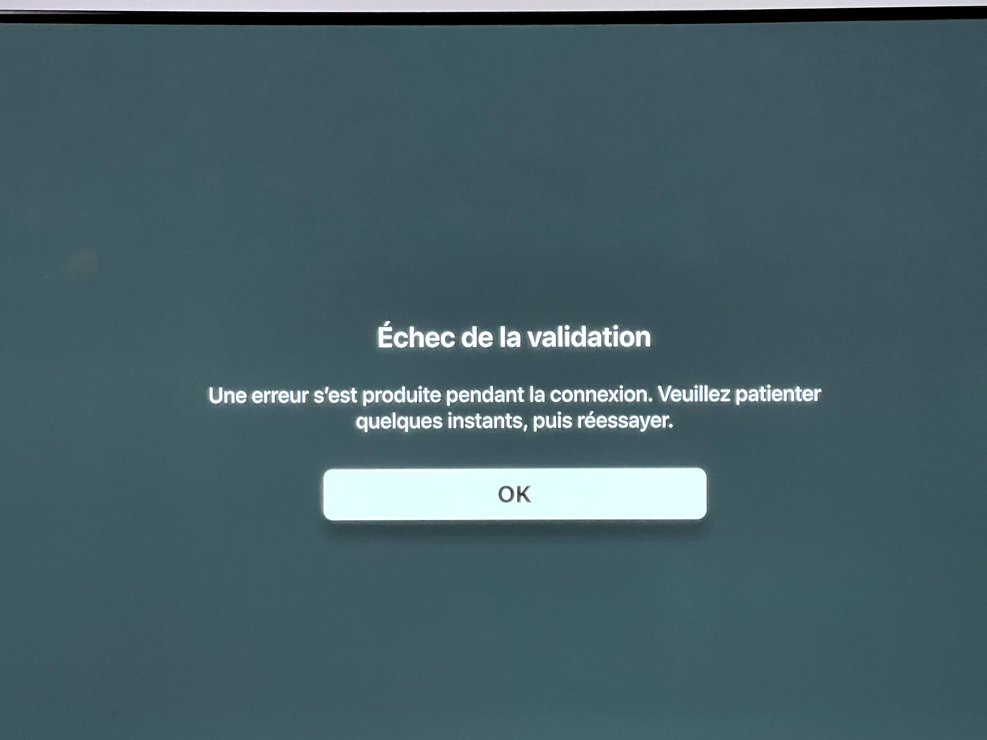 J'ai voulu profiter de ma période d’essai de 1 an à TV sur mon Amazon Fire Stick 4K (acheté exprès pour ça) et j'ai exactement le même message d'erreur à chaque tentative de connexion :