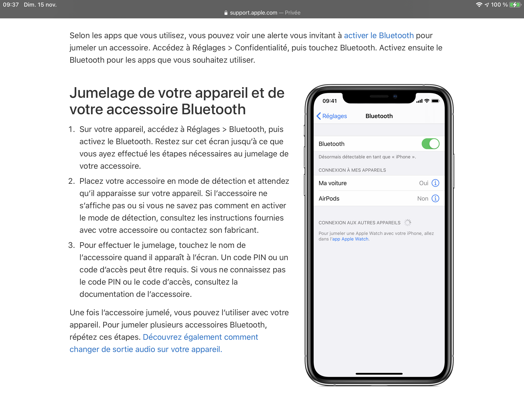 Je reviens à une question précédente : est-ce qu’une application de la marque du casque doit être installée ? La notice du casque doit l’indiquer. Si oui, alors, vérifier qu’elle est installée ou procéder à son installation en allant sur l’app Store, puis aller dans :