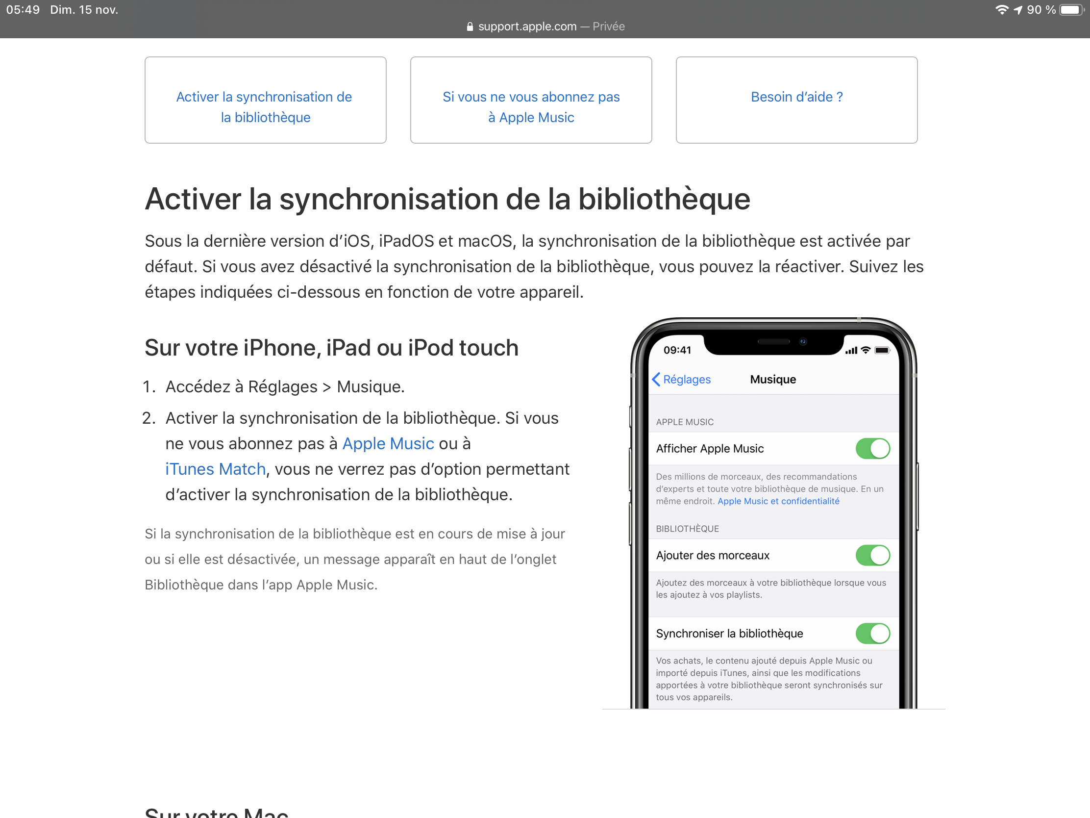 Activer la synchronisation de la bibliothèque avec Apple Music - Assistance Apple