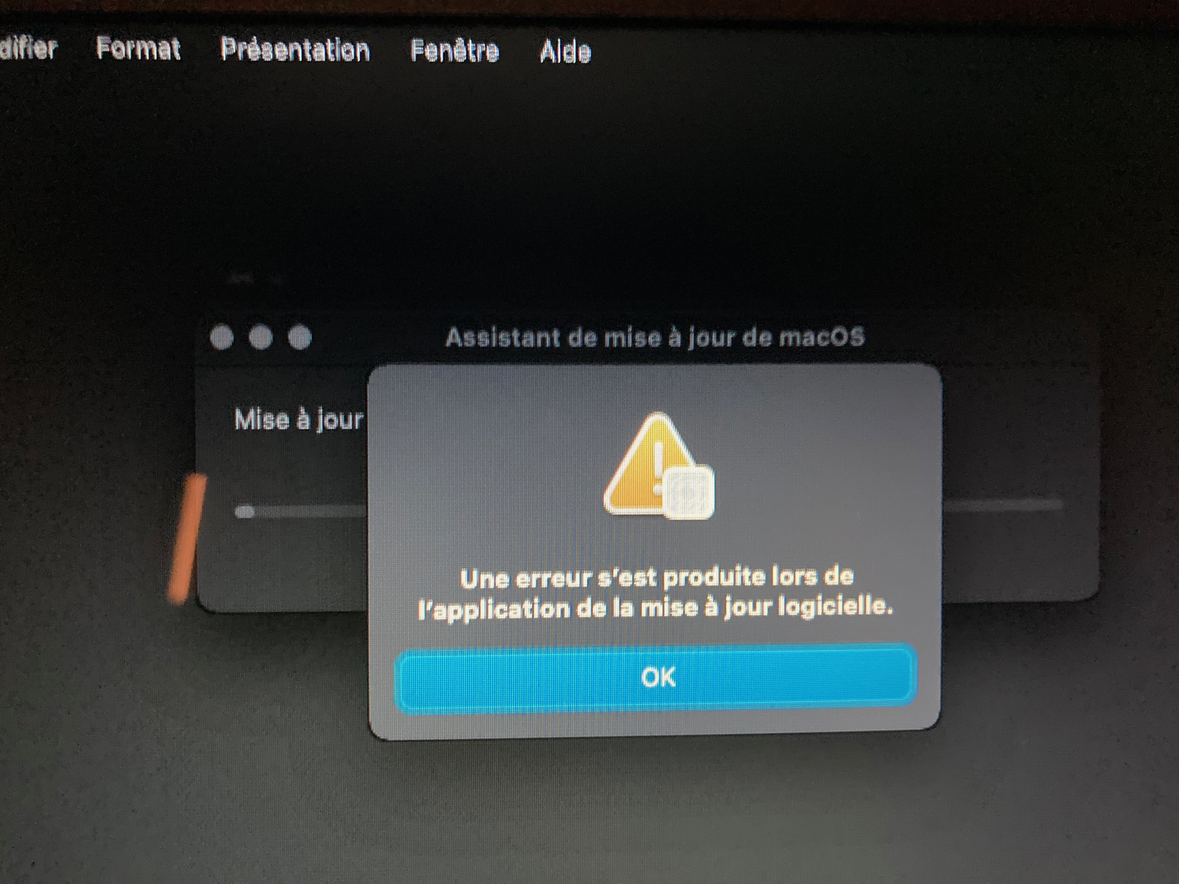 Mise à jour macOS Big Sur s'est arrêtée suite à une erreur