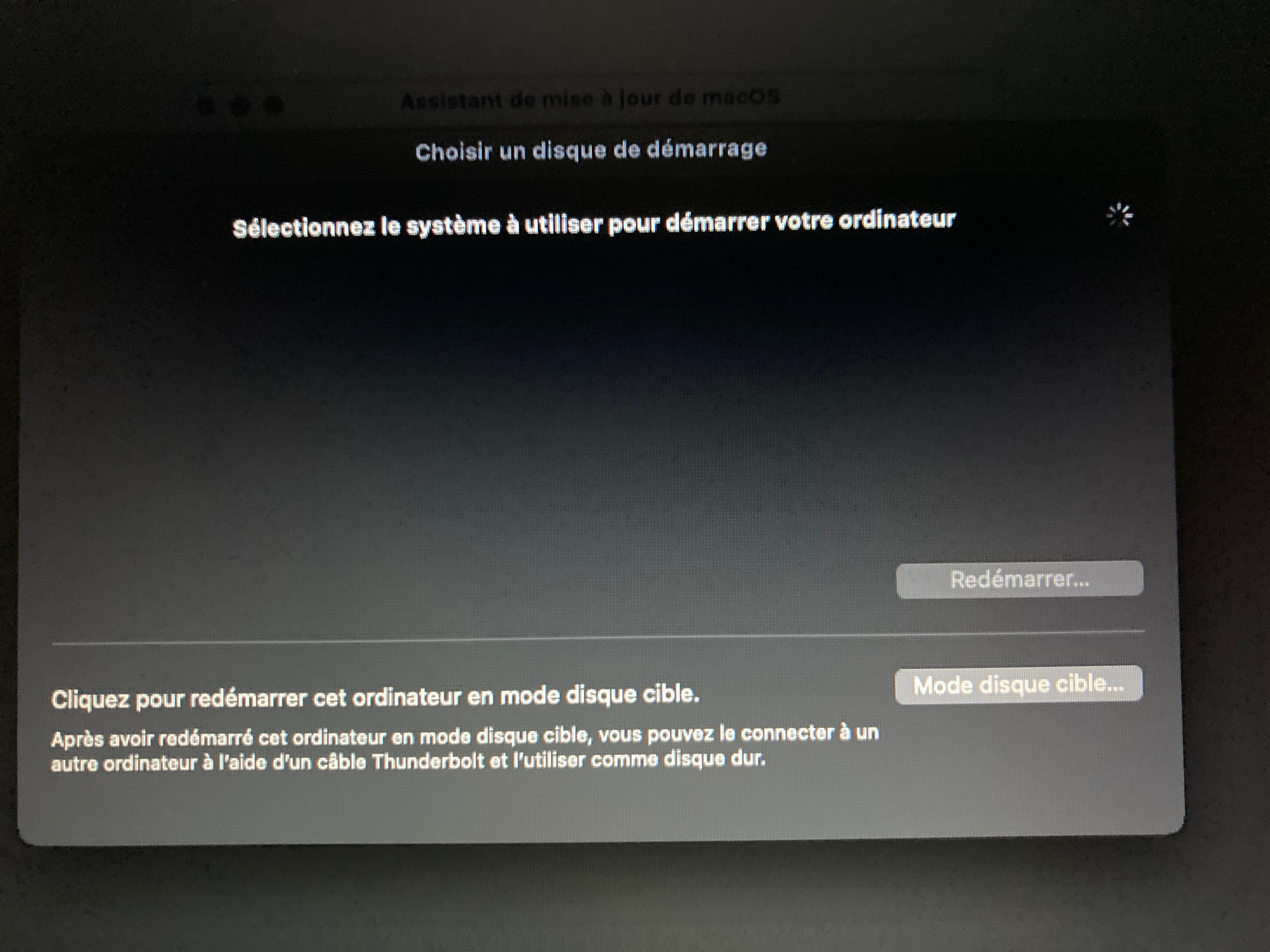 Le bouton "Mode disque cible" étant seul effectif, je valide et la fenêtre suivante apparait :