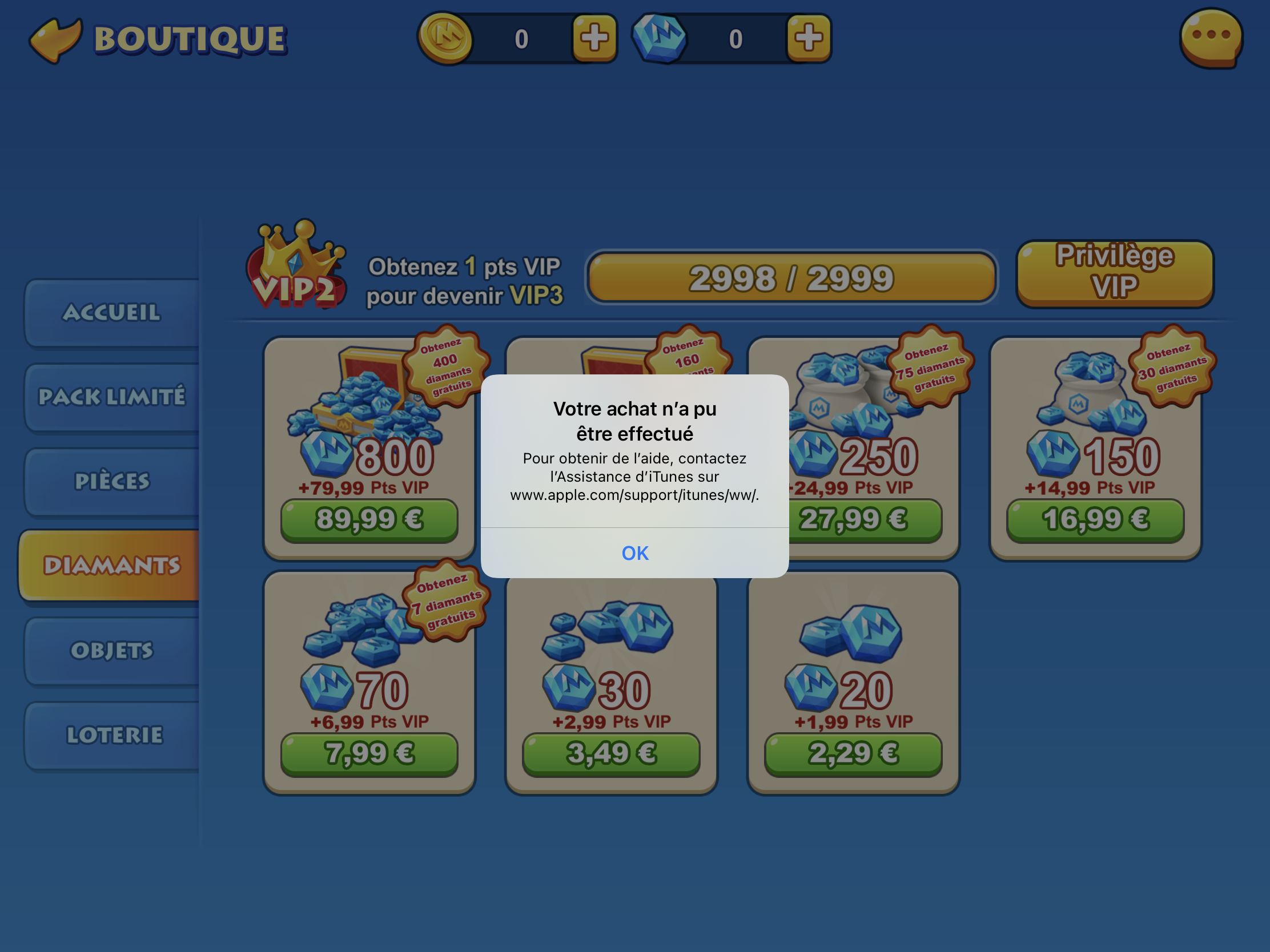 Je n'arrive pas à faire d'achats intégrés sur mon iPad