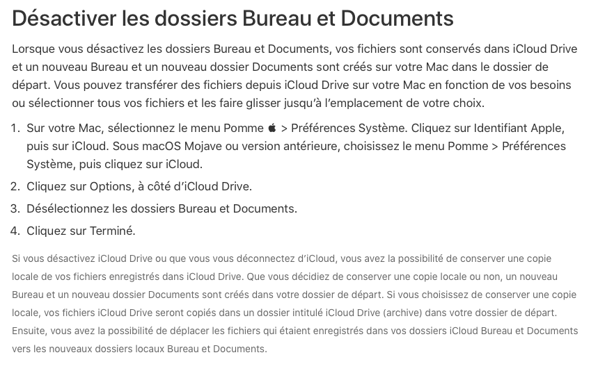 Ainsi, si tu ne souhaites pas avoir l'intégralité de Bureau et Documents de tes deux Mac, le mieux serait de désactiver l'option :