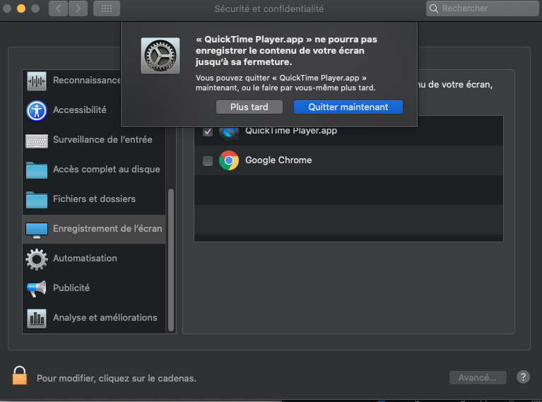 Enregistrement de l'écran sans son extérieur sur le Mac