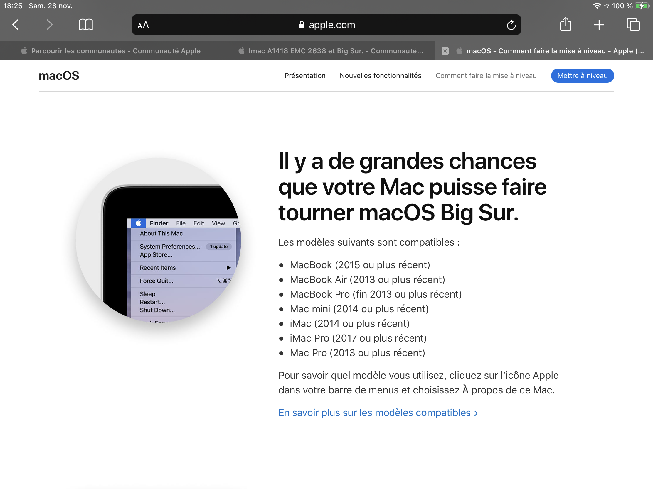 Bonjour, savez-vous si le iMac A1418 EMC 2638 est compatible Big Sur. l'App Store ne le propose pas. merci