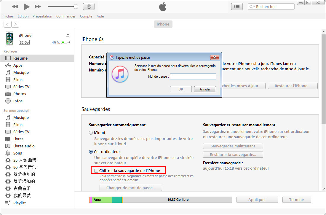 J’ai essayé de restaurer ma sauvegarde via iTunes, mais ce dernier me demande un mot de passe alors que je n’en ai jamais mis. J’ai alors essayer tous les mots de passe que j’aurai pu créé, au cas où je ne m’en souvenais pas. Mais après réflexions et avoir regarder sur internet. J’ai remarqué ce logo (entouré en rouge dans l’image 1) alors que lorsque je regarde sur internet, ce logo n'y est pas (image 2). Savez-vous pourquoi ?
