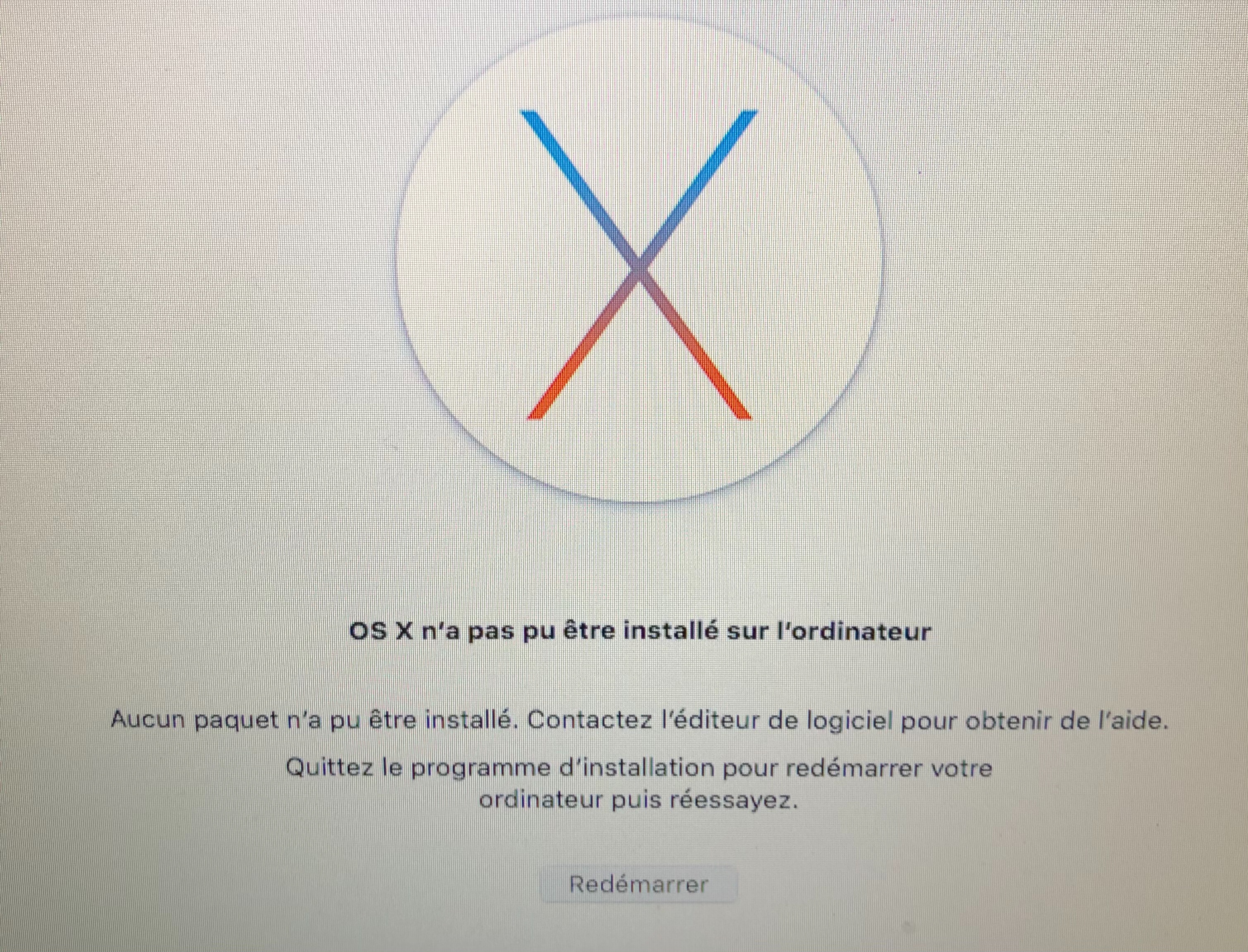 Bonjour, je possède un macbook pro mid 2009. Il ne redémarrait plus. J'ai donc changé le disque dur pour un SSD 1To Samsung Evo neuf. Lorsque je veux installer OS El Capitan via une clé USB, j'ai un message d'erreur. Avez-vous une idée du problème ? Merci