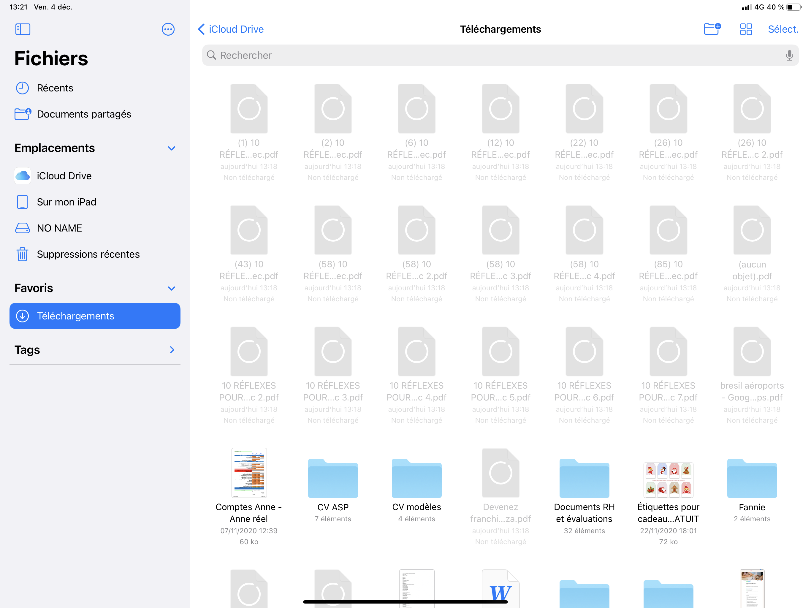 j’ai plusieurs fichiers en cours de téléchargement (ça tourne sans arrêt) qui bloquent l’IPad. Image en PJ. Comment puis-je les suspendre ?