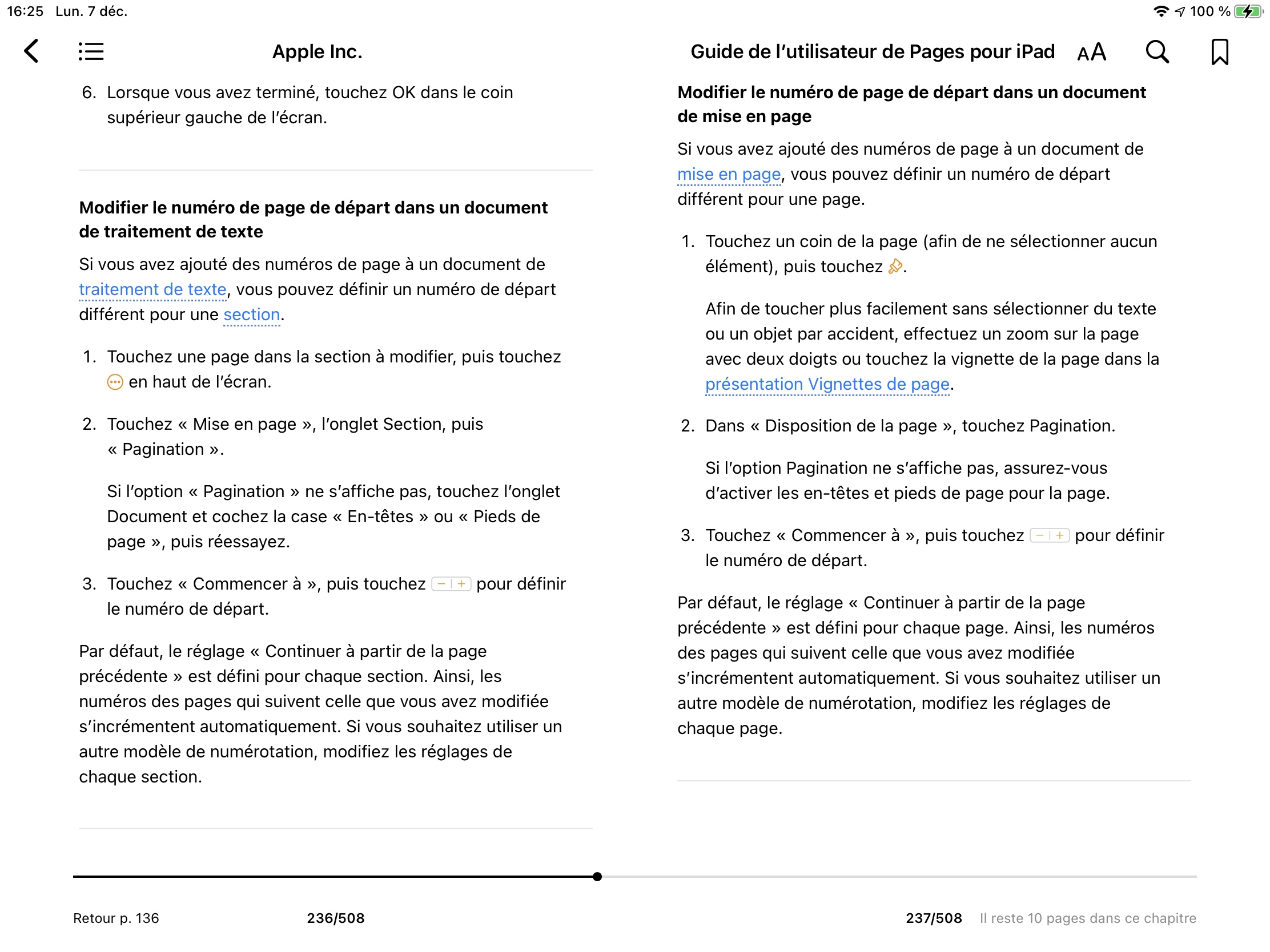 Décaler numérotation dans Pages pour Mac