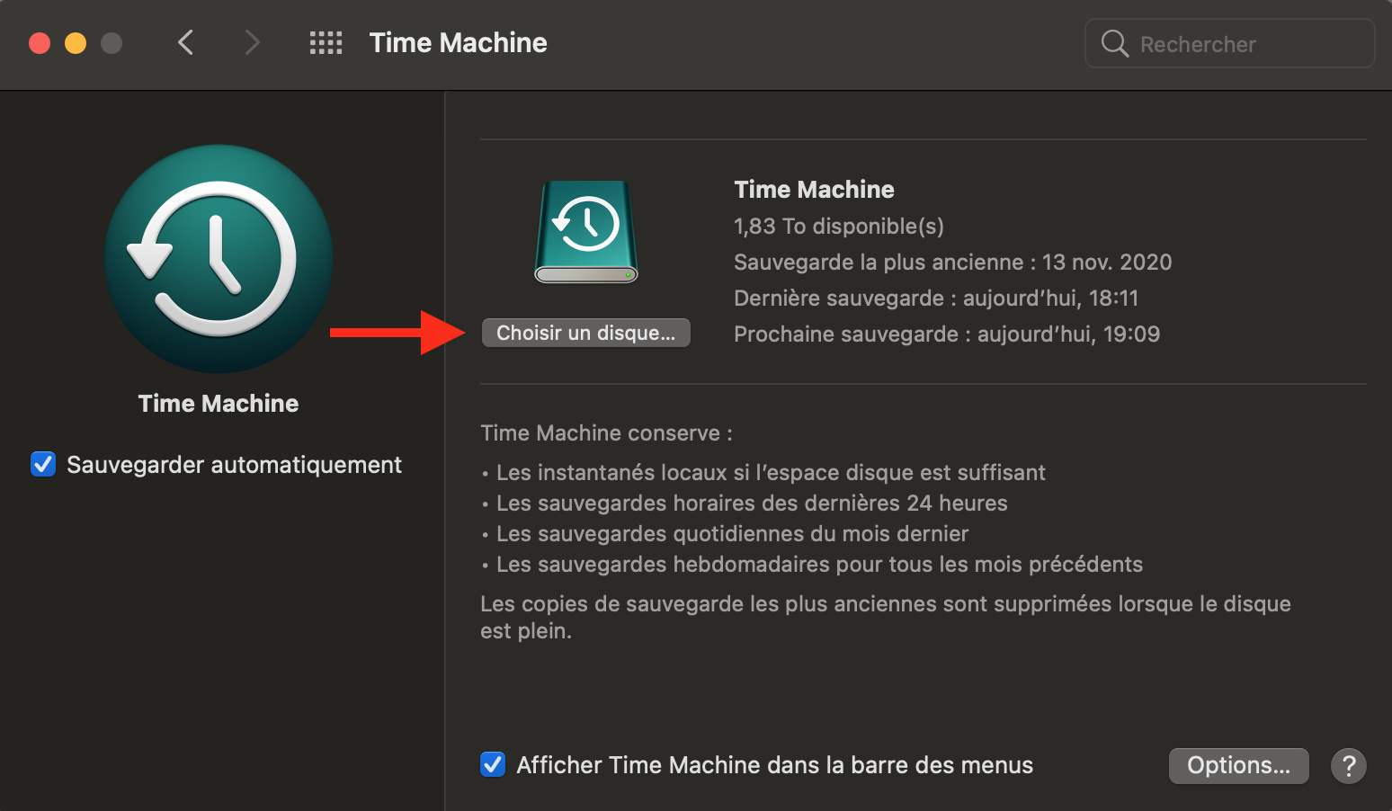 Déjà il faudrait savoir si ton DD Externe servait déjà pour Time Machine, dans ce cas tu avais une partition réservée pour les sauvegardes Time Machine, et quand il te demande de choisir un autre volume, tu cliques sur "Choisir un disque ..., et tu choisis celui qui sert à Time Machine, certainement renseigné "Time Machine".