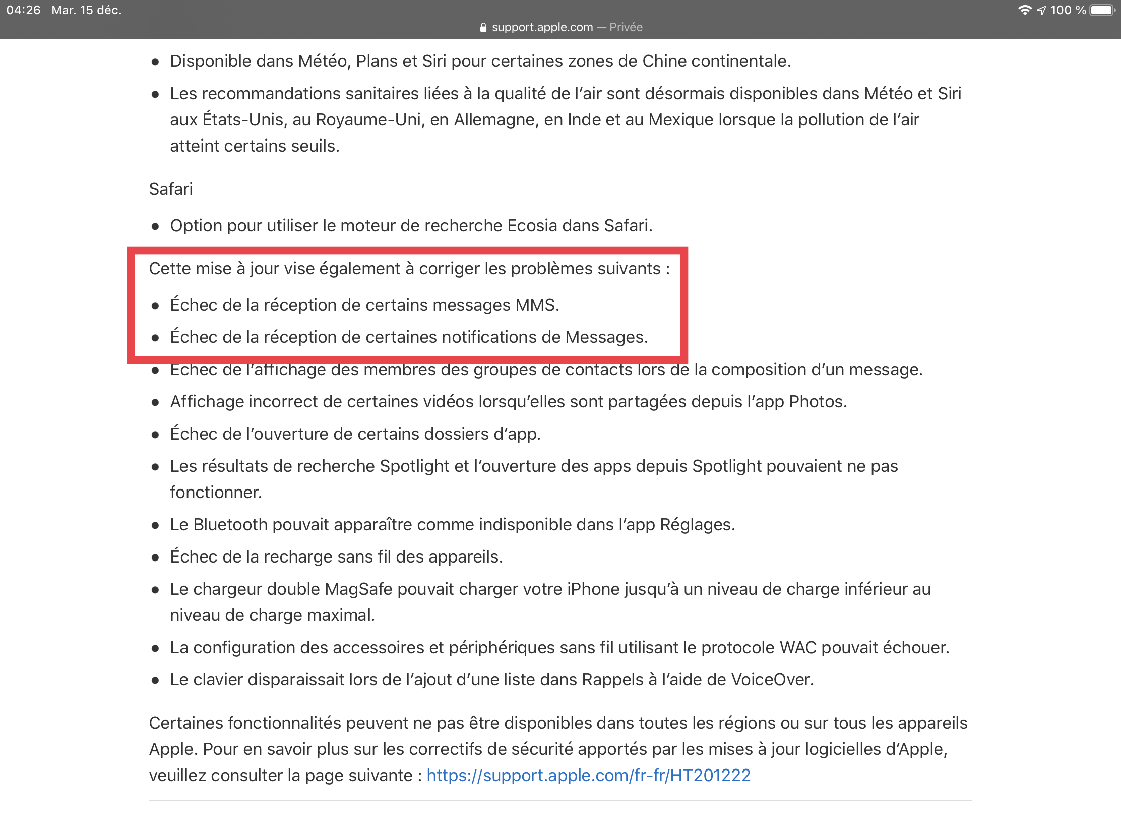 Apple devrait sortir une mise à jour iOs qui réglera le soucis. »