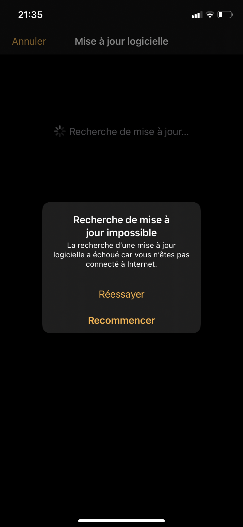 Impossible de jumeler mon iPhone XR sous iOS 14 avec ma watch série 2. Why? parce que là watch n’est pas à jour mais quand je veux lancer la maj depuis le téléphone j’ai ce message en boucle :