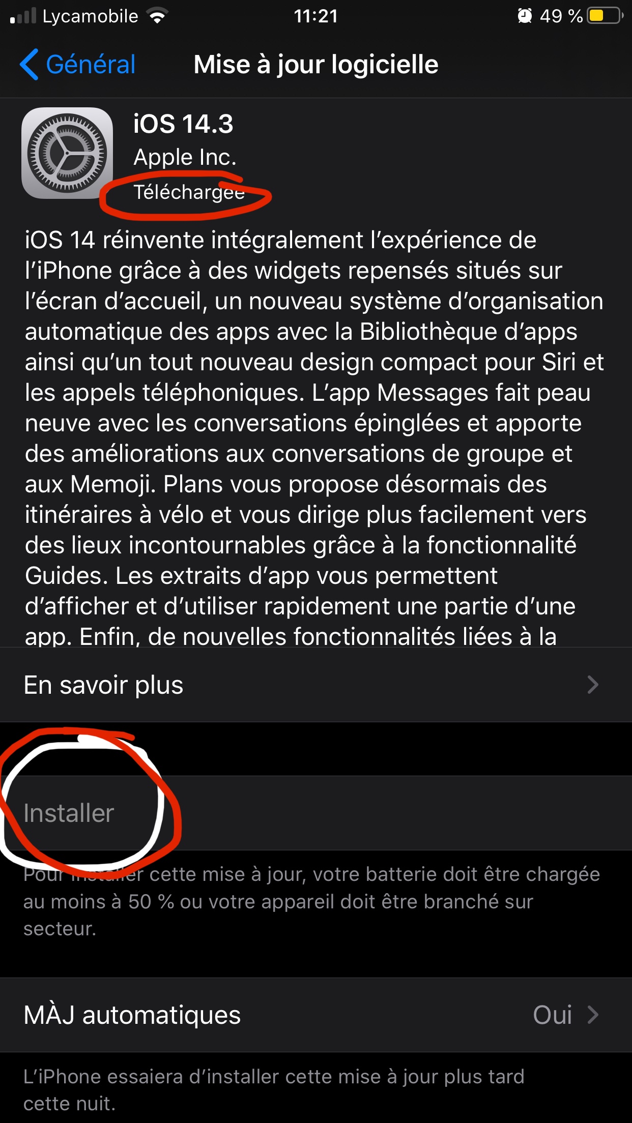 J’ai fait la mise à jour mais je n’arrive pas à l’installer que dois-je faire