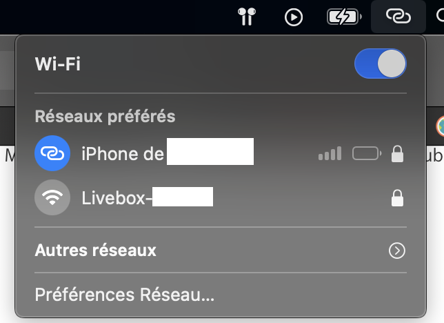 Partage de connexion iPhone > MBP