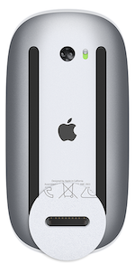 Si oui, le câble de rechargement est fourni dans la boite, il te suffit de le brancher au Mac ou sur un adaptateur secteur. Le port Lightning de la Magic Mouse se trouve ici :