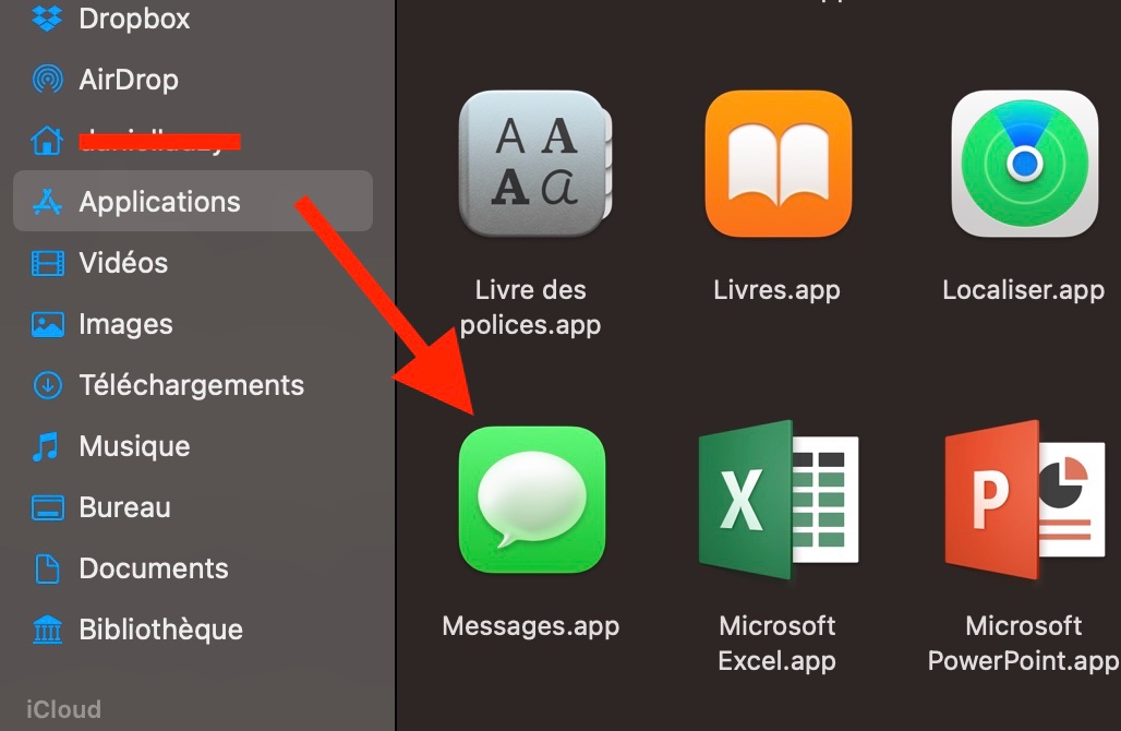 l'appli "Messages" se trouve dans ton dossier "Applications"