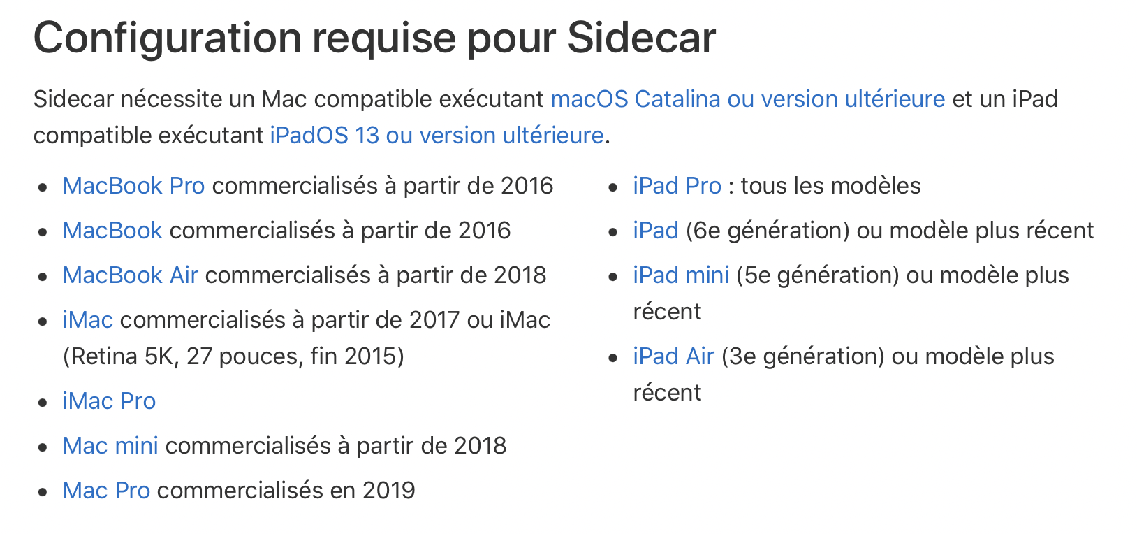 Compatibilité de mon iPad et de mon Mac avec Sidecar