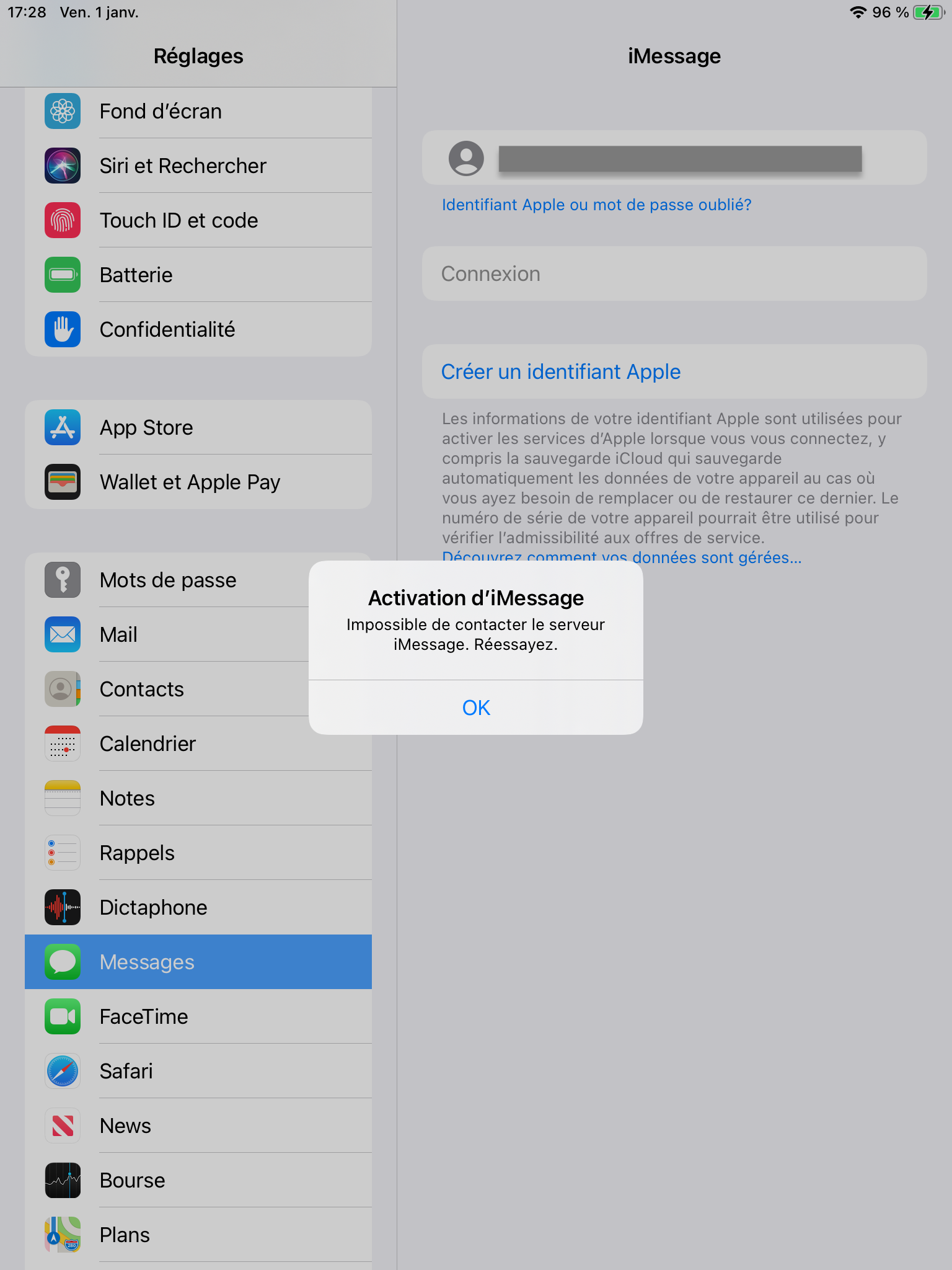 Mon iMessage ne se connecte plus depuis 2 jours.