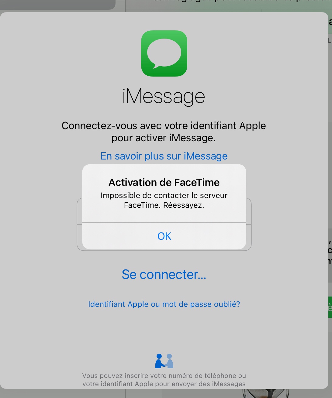 Comme le souci persiste, je me dis, du coup, que ce doc pourra peut-être avoir d'autres pistes : Affichage d’un message d’erreur lors de l’activation d’iMessage ou de FaceTime.