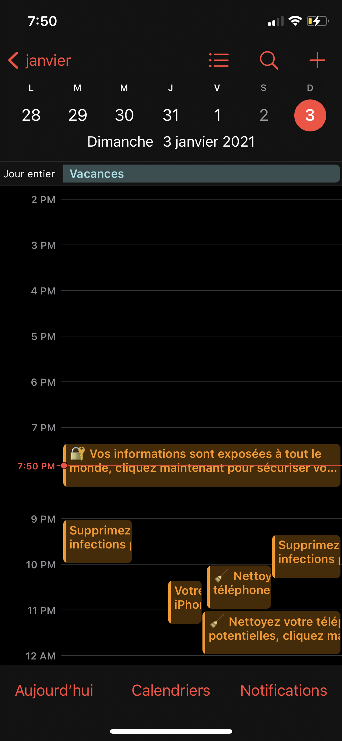 Nettoyer spams Calendriers sur iPhone