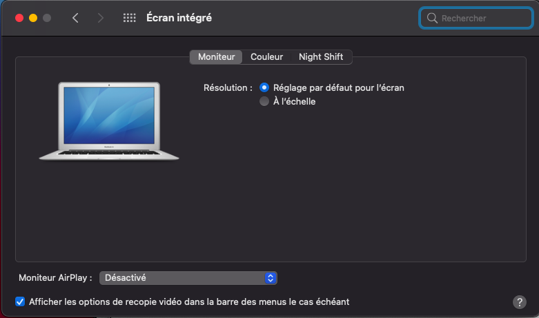 J'ai remarqué hier que je ne pouvais plus modifier la luminosité sur mon Macbook Air de 2015 sous la version Big Sur. Les boutons ne marchent pas, il s'activent rien. Je n'ai pas l'icon luminosité avec la jauge. De même, dans la barre d'outils, j peux mettre l'écran en night shift, régler le son, etc, mais la barre luminosité du moniteur est grisée. je vois qu'elle est pleine mais je ne peux pas la modifier ou la toucher. Dans préférence système, enfin, là ou normalement je peux manuellement régler la luminosité dans la rubrique Moniteur, la jauge n'apparait même pas en dessous des réglages sur la résolution.