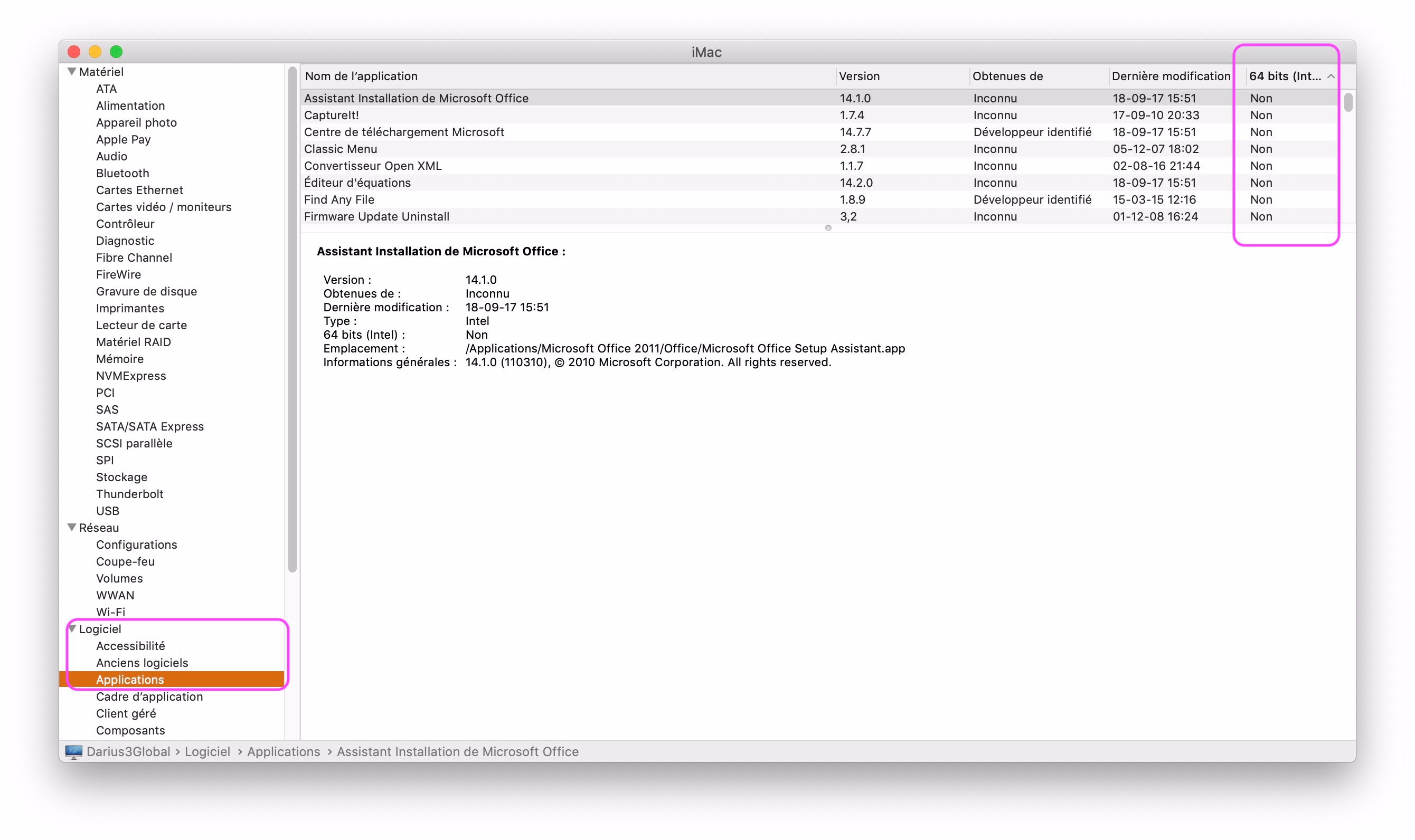 Ne tiens pas compte des logiciels Apple qui seront mis à jour lors de l'upgrade ou des logiciels que tu peux avoir gratuitement, mais d'autres payants comme Office 2011 (Office 2016 fonctionne), des programmes de dessins, de photos… et que tu ne veux pas devoir racheter ou qui n'existent pas en 64 bits et que tu veux pouvoir continuer à utiliser le plus longtemps possible.