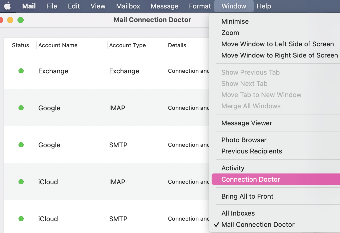 Normalement tu devrais avoir un point rouge a coté de ton adresse email, sur la meme ligne que SMTP (SMTP = serveur d'envoi)
