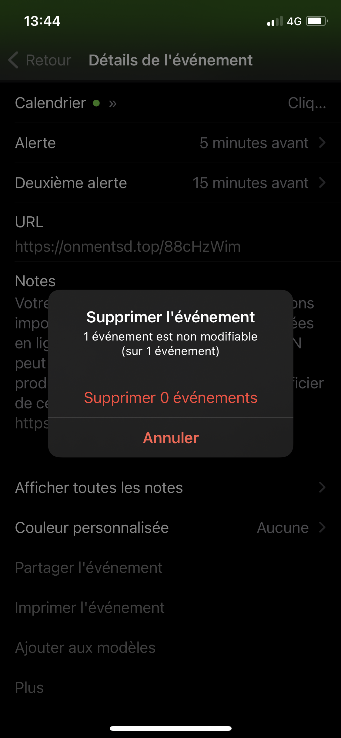 Supprimer un événement Spam dans Calendrier sur iPhone