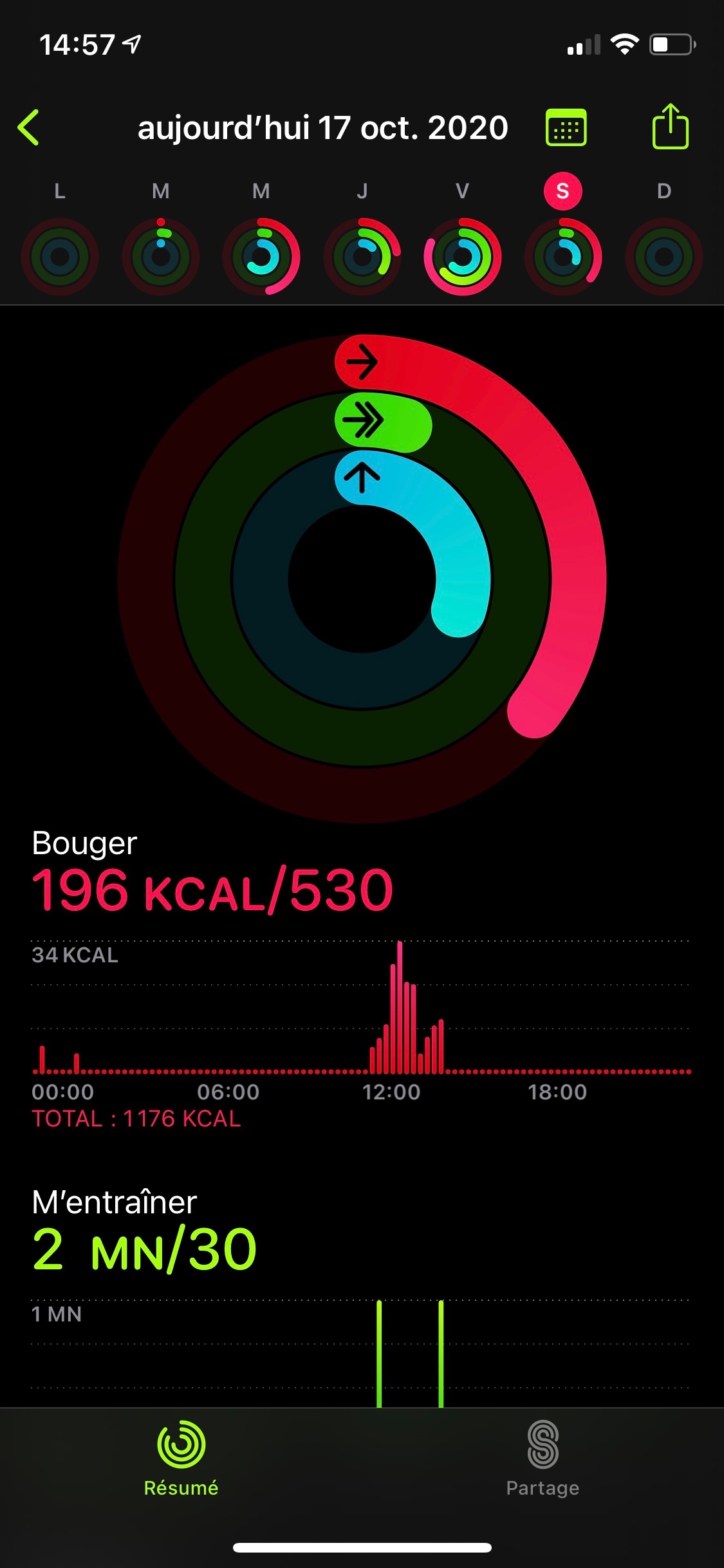 Lorsque je fais mes randonnées, l’anneau s’entraîner, ne correspond pas du tout au temps effectué réellement. Je vous montre photos c’est plus explicite.